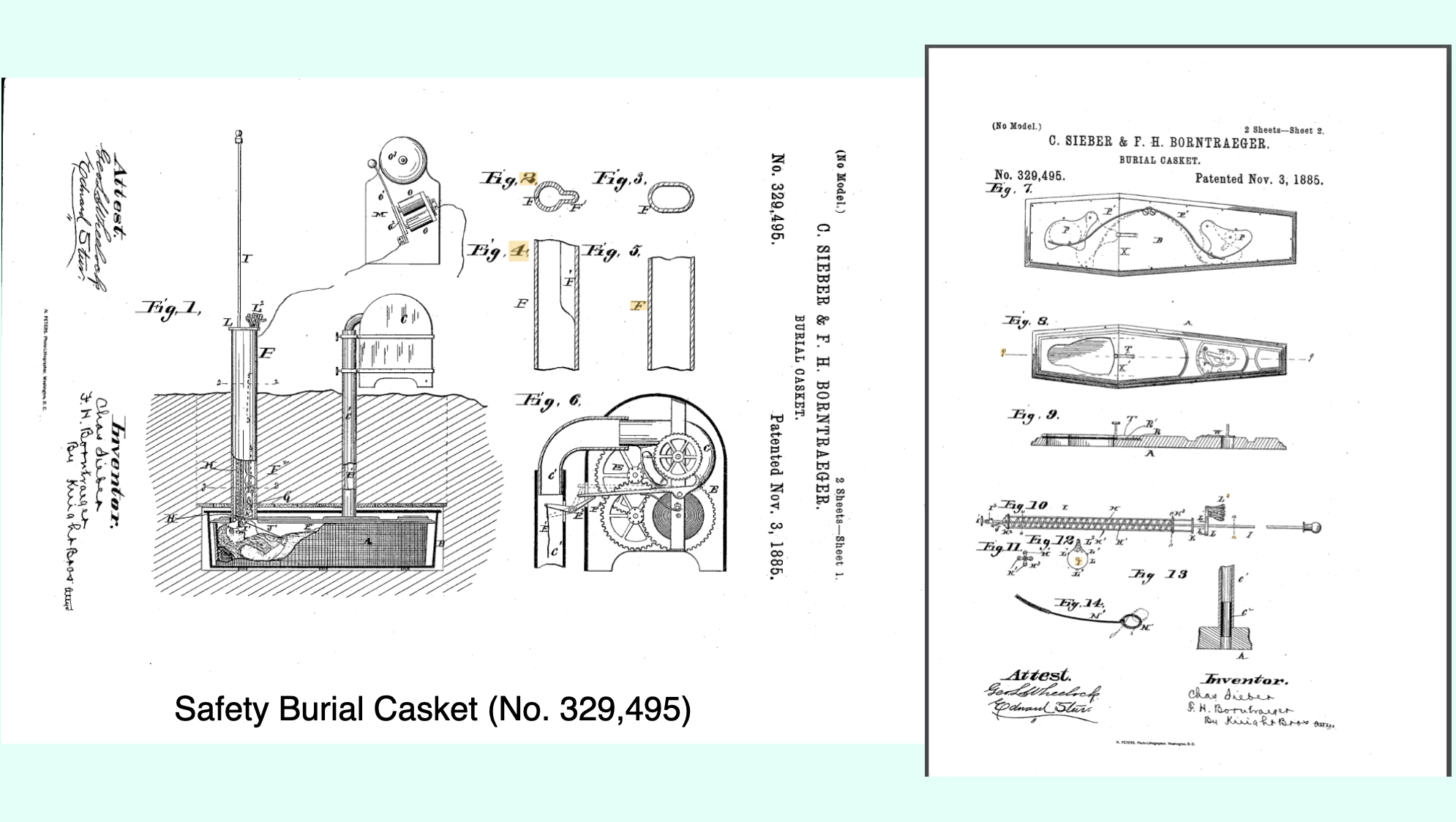 ON THIS DAY: 3 November, 1885 – U.S. Patent No. 329,495 was granted for the Safety Burial Casket, invented by Charles Sieber and Frederick H. Borntraeger of Waterloo, Monroe County, Illinois. In the nineteenth century, a widespread fear gripped the public imagination – that of being buried alive. This anxiety, known as tapephobia, was fueled … Read more
